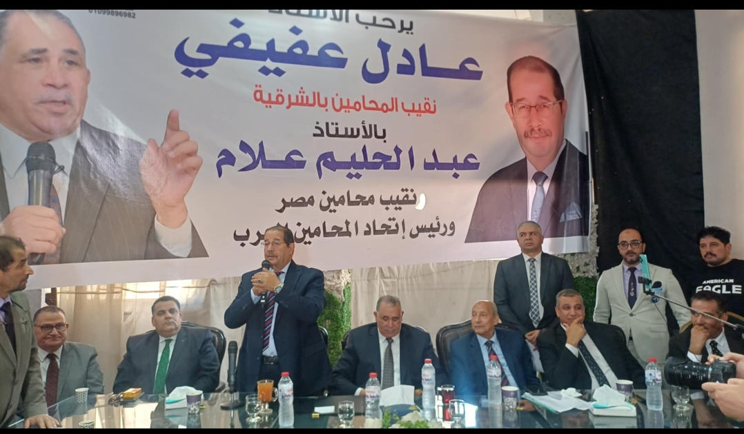 شهدت نقابة المحامين بمحافظة الشرقية انعقاد مؤتمر جماهيري موسّع لدعم المستشار عادل عفيفي في الانتخابات البرلمانية 2025، وذلك بحضور نقيب المحامين على مستوى الجمهورية ورئيس اتحاد المحامين العرب النقيب عبد الحليم علام، وعدد من أعضاء مجلس النقابة العامة ممثلا في كل من المحامين محمود تفاحه و محمد عيسي و محسن