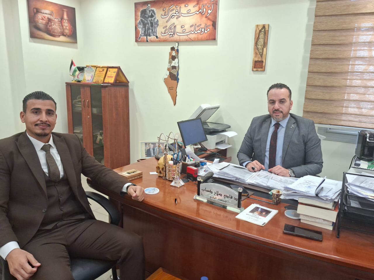 قيادات فلسطينية تتابع عن كثب رعاية الجرحى الفلسطينيين بالقاهرة وتثمن دور القيادة المصرية برعايتهم       في إطار تعزيز الجهود الوطنية لخدمة أبناء شعبنا الفلسطيني، التقى الرفيق المستشار محمد ماهر مقداد، الأمين العام لحركة الائتلاف الوطني الفلسطيني، مع المستشار الطبي لسفارة دولة فلسطين في القاهرة الدكتور فادي صلاح كساب،