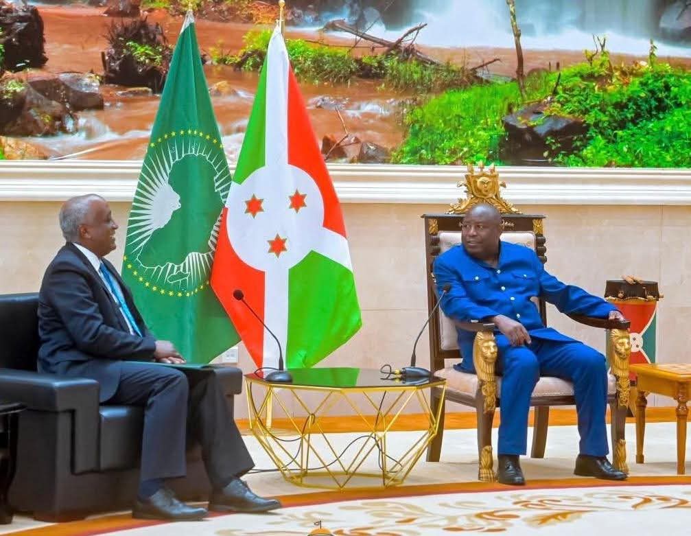 نائب وزير الخارجية للشئون الأفريقية يلتقي الرئيس البوروندي عبده الشربيني حمام استقبل السيد إيفاريست ندايشيمى، رئيس جمهورية بوروندي والرئيس الحالي للاتحاد الأفريقي، السفير محمد أبو بكر، نائب وزير الخارجية والتعاون الدولي للشئون الأفريقية، حيث تم استعراض سبل تعزيز العلاقات الثنائية بين البلدين. أكد الجانبان على عمق الروابط التي تجمع