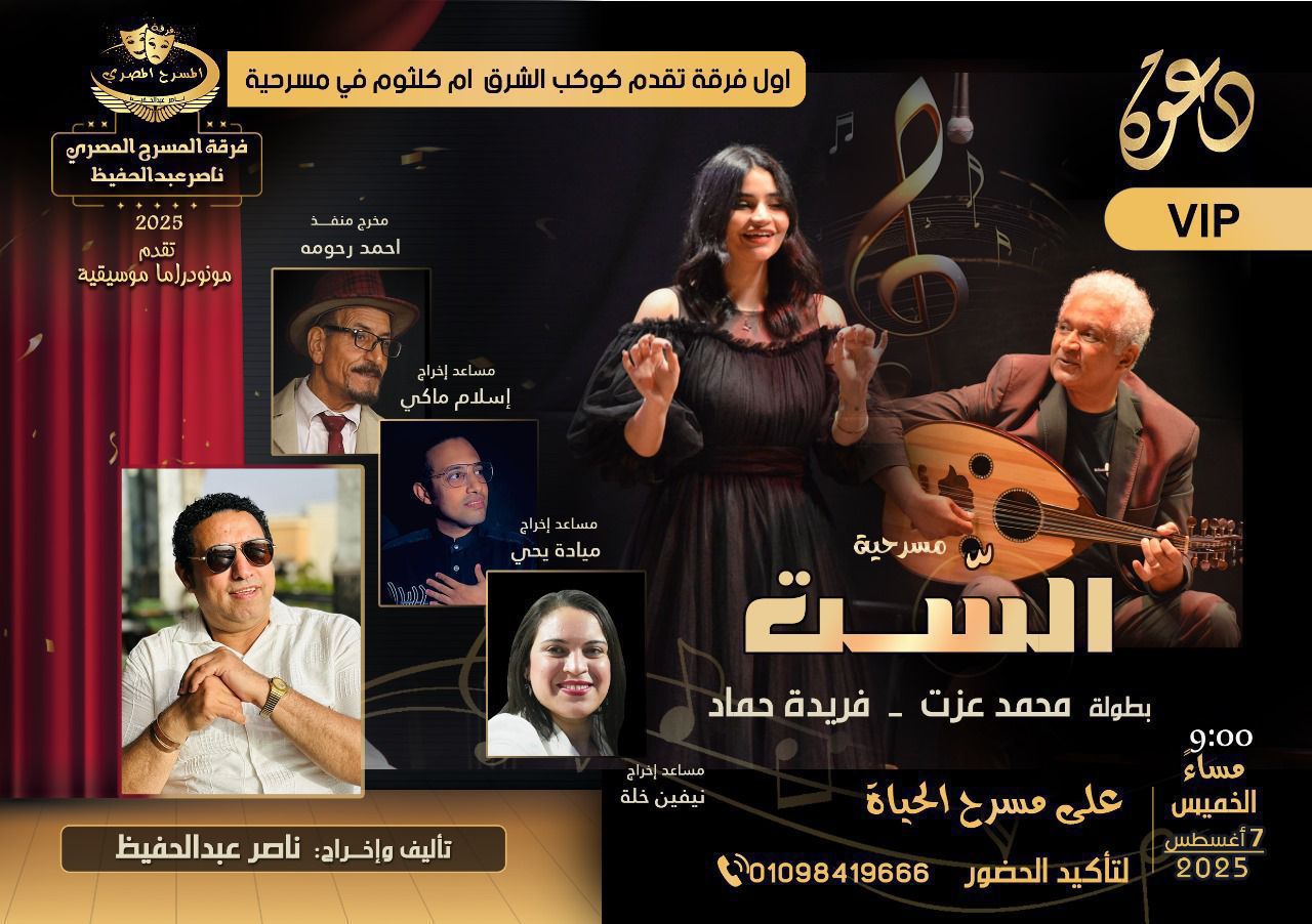 لأول مرة في مصر .. أم كلثوم وبليغ على خشبة مسرح الحياة في عرض ثري غير مسبوق كتبت : رشا محمدي  في سابقة مسرحية تُعد الأولى من نوعها، تشهد الحركة المسرحية المصرية هذا العام ،حدثًا فنيًا استثنائيًا، حيث تقدم فرقة المسرح المصري ،عرضًا غير تقليديًا بعنوان “الست”، يُعيد إحياء العلاقة