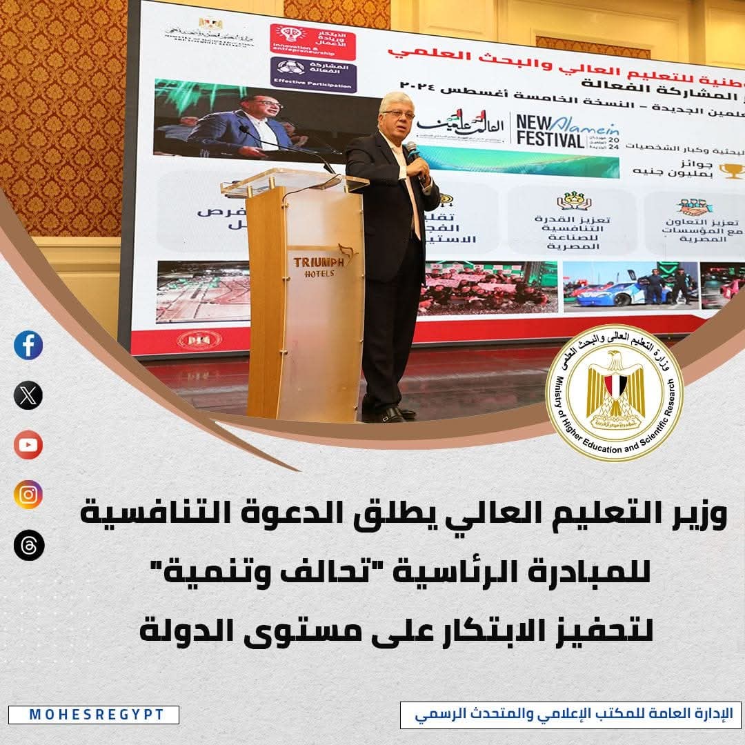 متابعة القراءةالحصاد الأسبوعي لوزارة التعليم العالي والبحث العلمي امل كمال تواصل وزارة التعليم العالي والبحث العلمي جهودها المستمرة لتعزيز منظومة التعليم العالي والبحث العلمي في مصر، ودعم القضايا التنموية والمجتمعية. وفي هذا الإطار أصدرت الإدارة العامة للمكتب الإعلامي والمتحدث الرسمي للوزارة تقريرًا يستعرض سلسلة من الأنشطة والفعاليات خلال الفترة من 15