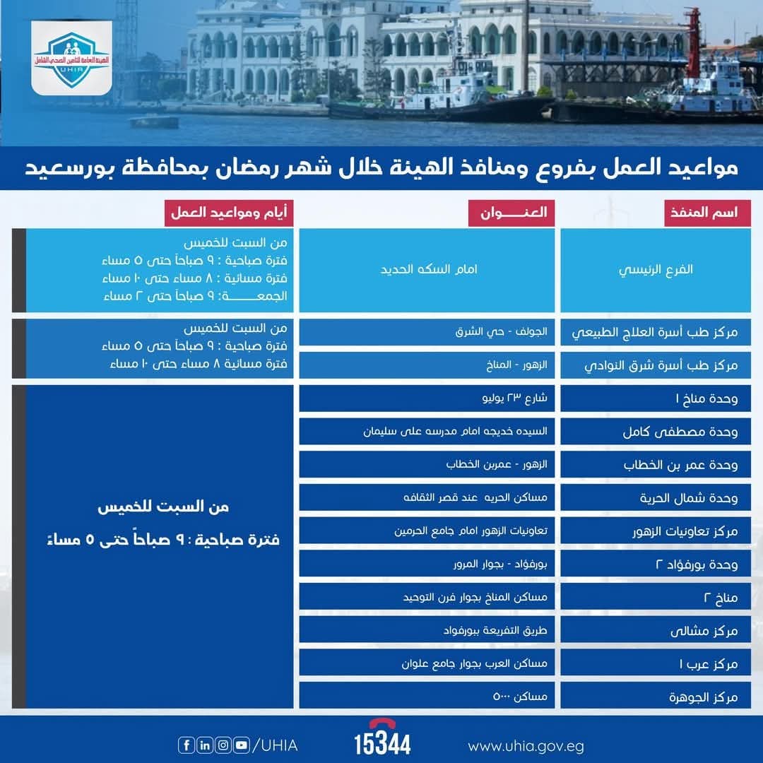 متابعة القراءةالهيئة العامة للتأمين الصحي الشامل تعلن مواعيد العمل الجديدة خلال شهر رمضان امل كمال أعلنت الهيئة عن مواعيد العمل الرسمية خلال شهر رمضان المبارك، بالفروع الرئيسية والمنافذ التابعة لها، وذلك بما يضمن استمرار تقديم الخدمات الصحية بكفاءة مع مراعاة طبيعة الشهر الكريم ومتطلبات المواطنين. وقالت الهيئة في بيان صحفي، اليوم،