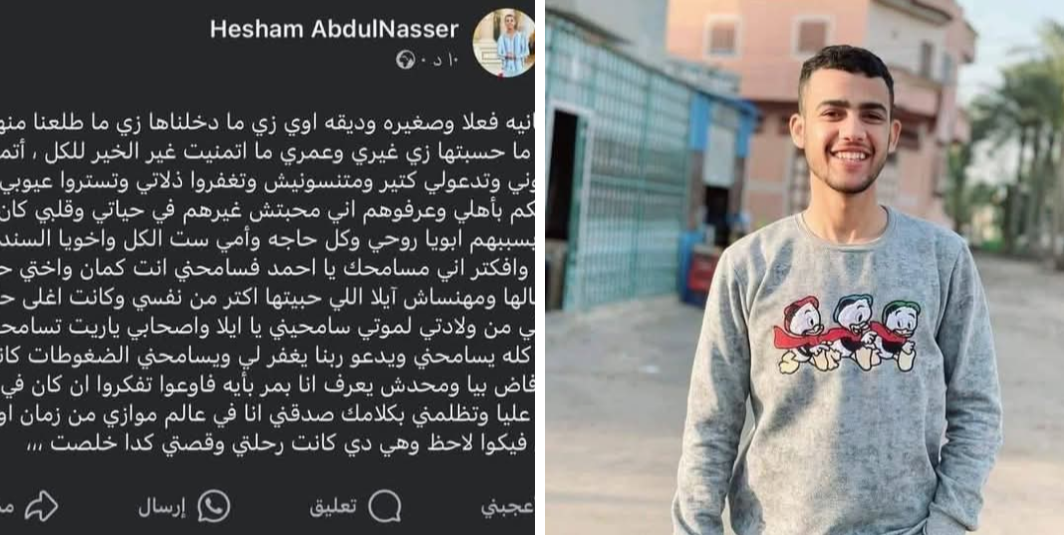 متابعة القراءةاقدم طالب طب بيطري على التخلص من حياته بإلقاء نفسه في ترعة قريته الفرايحه التابعه لمركز اولاد صقر في محافظة الشرقيه ويذكر ان الشاب هشام عبدالناصر طالب في الفرقه الثالثه بكلية الطب البيطري جامعة الزقازيق قد كتب اخر منشور له على صفحته الشخصيه وترك رساله لاسرته واصدقاءه طالبا منهم مسامحته