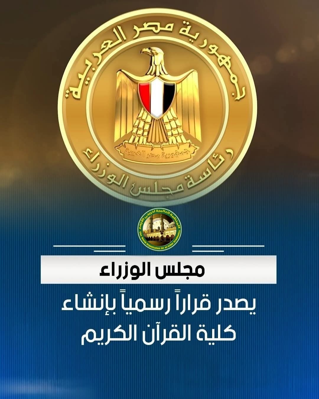 متابعة القراءةمجلس الوزراء يوافق على قرار إنشاء كليتي القرآن الكريم للقراءات وعلومها بجامعة الأزهر بالقاهرة