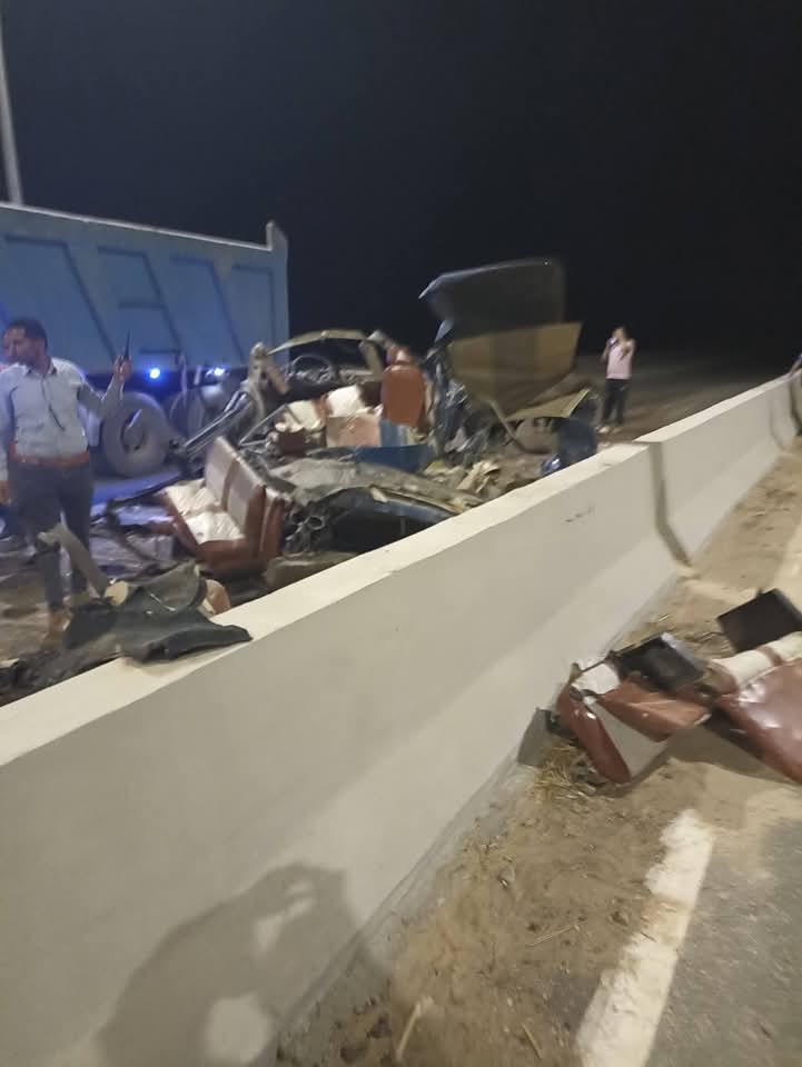 ووقع حادث التصادم بين سيارة نقل وأخرى ربع نقل مع سيارة ملاكي .