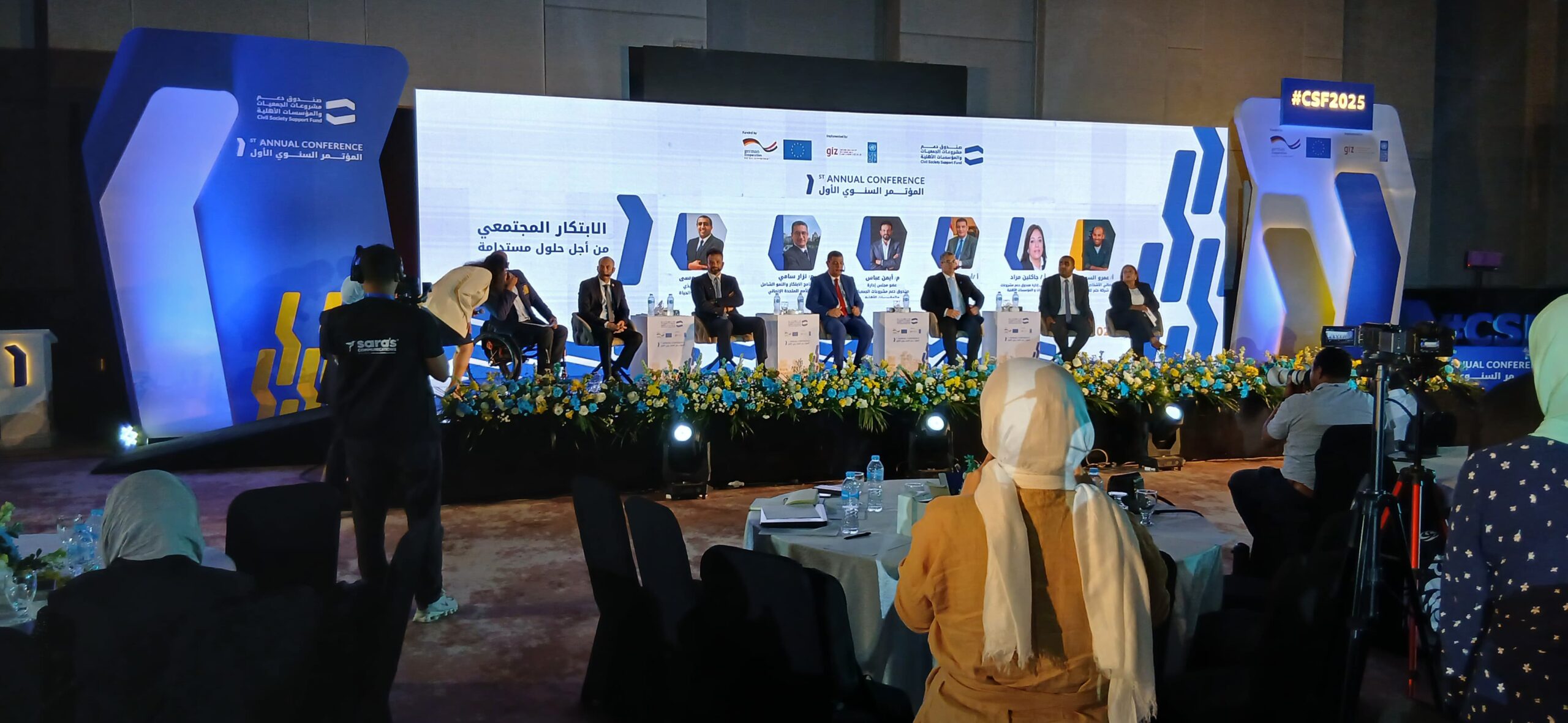 وشارك في الجلسة الأستاذ أيمن عبد الموجود الوكيل الدائم لوزارة التضامن الاجتماعي، والمهندس أيمن ممدوح عباس عضو مجلس إدارة صندوق دعم مشروعات الجمعيات والمؤسسات الأهلية، والأستاذ عمرو حسني عضو مجلس إدارة صندوق دعم مشروعات الجمعيات والمؤسسات الأهلية، والأستاذة جاكلين مراد عضو مجلس إدارة صندوق دعم مشروعات الجمعيات والمؤسسات الأهلية، والمهندس أحمد موسى – الرئيس التنفيذي لمؤسسة صُنّاع الحياة، والأستاذ نزار سامي –مسؤول برامج الابتكار والنمو الشامل ببرنامج الأمم المتحدة الإنمائي (UNDP)، وأدارها الأستاذ عمرو السوهاجي اخصائي الأشخاص ذوي الإعاقة في حلم للاستشارات وبطل رياضي بارالمبي.
