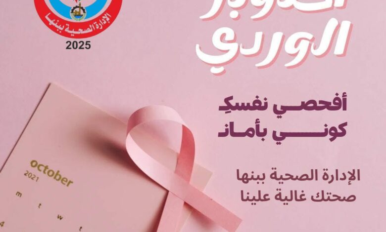 تقوم الاداره الصحيه بالوعي والدعم الدائم بطلق حمله دعم وتوعيه للمراه المصريه ضد سرطان الثدي تحت رعايه وكيل وزاره الصحه بالقليوبيه الدكتور اسامه الشلقاني والدكتور محمد جمال وكيل المديريه والدكتور بكري سعيد مدير الاداره صحيه ببنها والدكتوره نشوى السنوسي مديره التفتيش الصيدلي الفحص المبكر لمرضى سرطان الثدي بالمجان