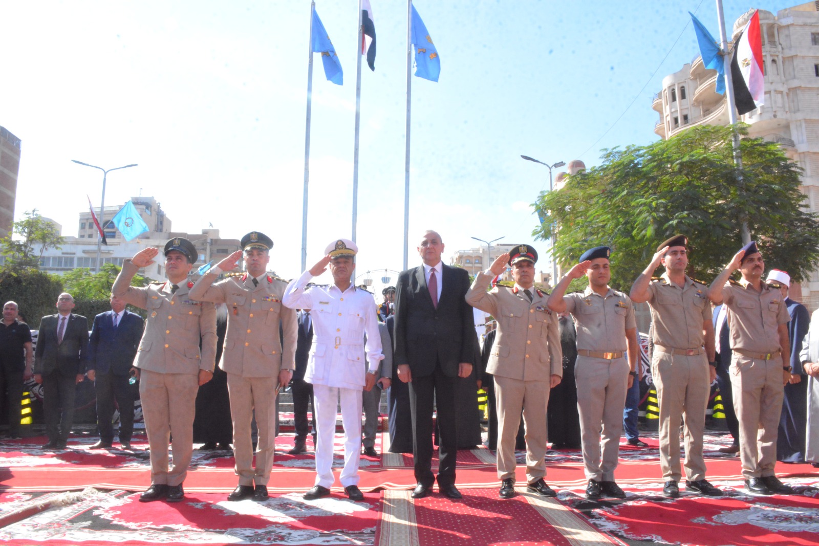 كما وجّه المحافظ التحية لأرواح شهداء الوطن من رجال القوات المسلحة والشرطة الذين قدّموا حياتهم دفاعًا عن أمن البلاد واستقرارها، داعيًا الله عز وجل أن يحفظ مصر وشعبها وجيشها وقيادتها من كل سوء، وأن يديم عليها نعمة الأمن والأمان تحت راية القيادة الحكيمة للرئيس عبد الفتاح السيسي رئيس الجمهورية.