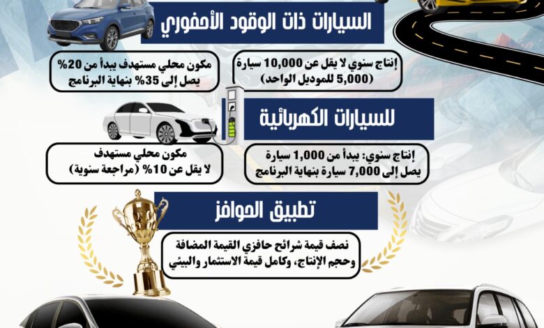 تعرف على الحوافز المقدمة لمصنعي السيارات في إطار البرنامج الوطني لتنمية صناعة السيارات واشتراطات الاستفادة من البرنامج