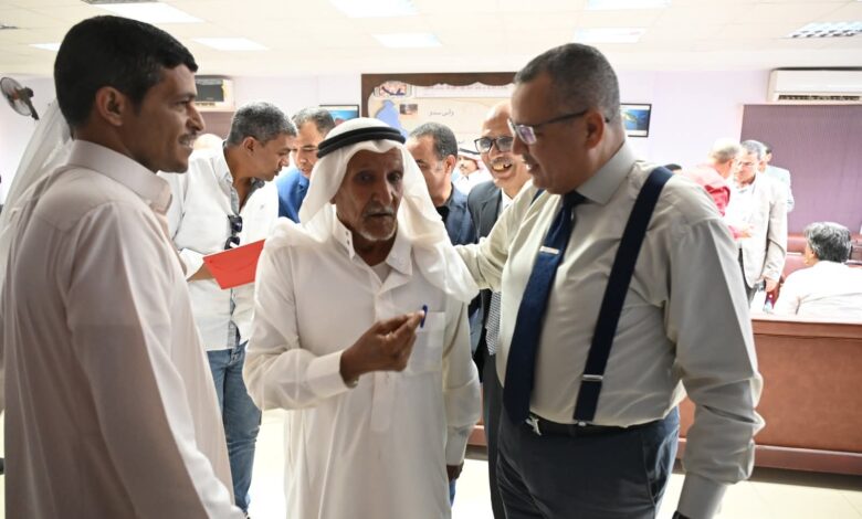 واختتم اللواء خالد مبارك اللقاء بالتأكيد على استمرار عقد اللقاءات الدورية مع الأهالي ومشايخ وعواقل القبائل، وتكليف الأجهزة التنفيذية بمتابعة تنفيذ التوصيات والالتزام بالجدول الزمني المحدد لإنهاء الموضوعات المطروحة، بما يحقق الصالح العام ويعزز مشاركة المواطنين في صنع القرار المحلي