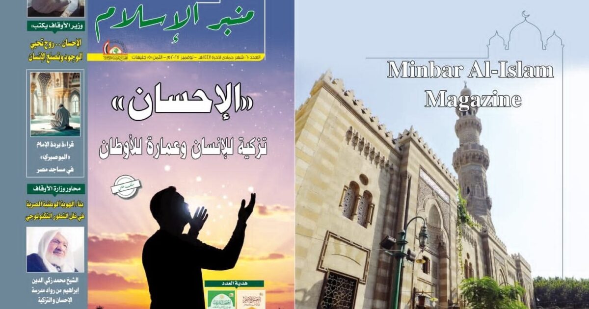 أصدرت وزارة الأوقاف العدد الجديد من مجلة «منبر الإسلام» لشهر جمادى الآخرة ١٤٤٧هـ، وتم تخصيص العدد لقيمة “الإحسان” وأثره في تزكية الإنسان وعمارة الأوطان، وذلك من خلال مقالات لكبار العلماء والكتّاب والمتخصصين.