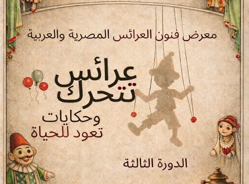 حيث يتم الساعة ١٢:٤٥ ظهرًا إفتتاح معرض فنون العرائس المصرية والعربية – الدورة الثالثة ٢٠٢٦، بمركز الهناجر بدار الأوبرا المصرية،