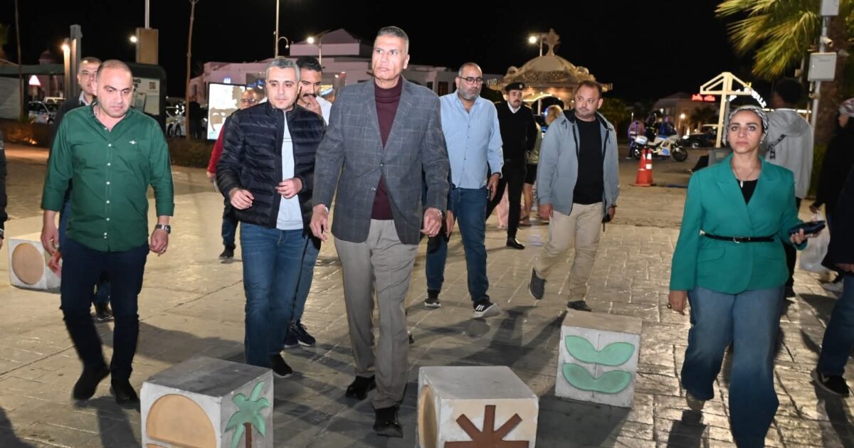 محافظ جنوب سيناء يقوم بجولة ليلية سيرًا على الأقدام بخليج نعمة بمدينة شرم الشيخ