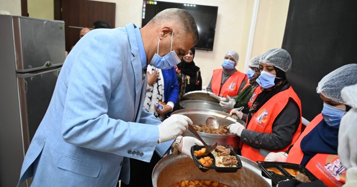 وخلال جولته، حرص المحافظ على المشاركة في إعداد وتجهيز عدد من الوجبات داخل المطابخ، حيث شارك العاملين والمتطوعين في تعبئة الوجبات وتجهيزها للتوزيع، في لفتة إنسانية تعكس دعمه الكامل لهذه المبادرات المجتمعية.