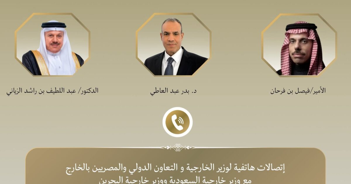 جرى اتصالان هاتفيان بين د. بدر عبد العاطي وزير الخارجية والتعاون الدولي والمصريين بالخارج، وكل من صاحب السمو الأمير فيصل بن فرحان وزير خارجية المملكة العربية السعودية الشقيقة، والدكتور عبد اللطيف بن راشد الزياني وزير خارجية مملكة البحرين الشقيقة، يوم الأربعاء ٢٥ مارس، وذلك في إطار التشاور والتنسيق المستمر إزاء التطورات الإقليمية المتسارعة.