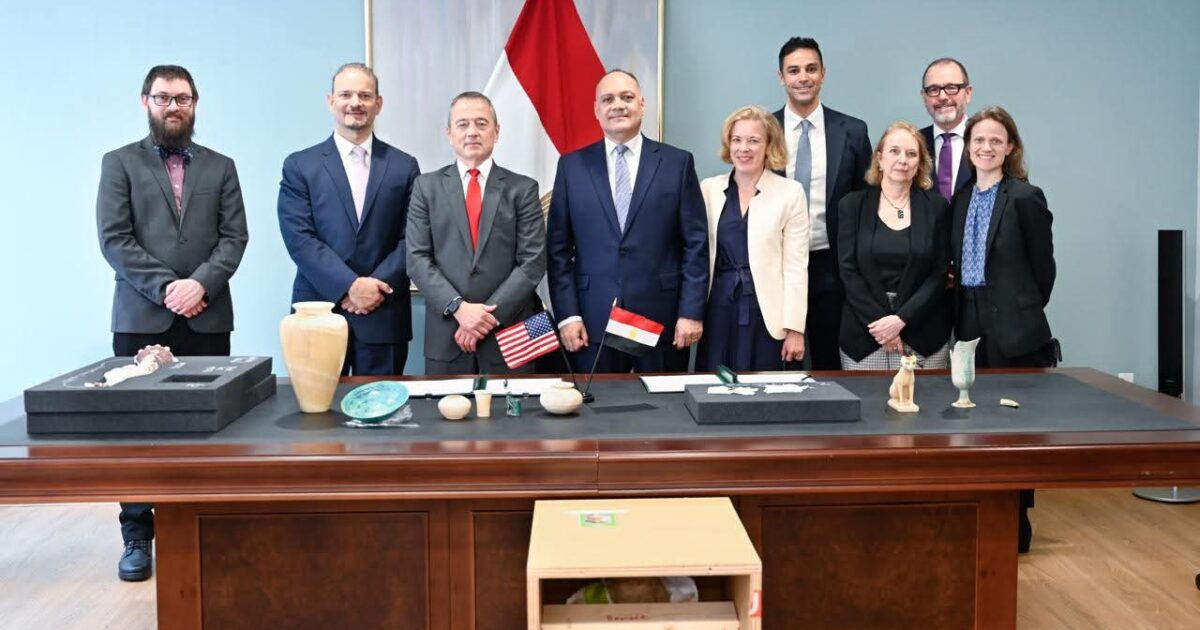في إطار الجهود المتواصلة للدولة المصرية لاسترداد الممتلكات الثقافية التي خرجت من مصر بطرق غير مشروعة، وتنفيذاً لتوجيهات القيادة السياسية بإيلاء استرداد الآثار المصرية إلى أرض الوطن أولوية قصوي، تسلمت القنصلية العامة لجمهورية مصر العربية في نيويورك مجموعة من القطع الأثرية النادرة والتي خرجت من مصر بطرق غير مشروعة.
