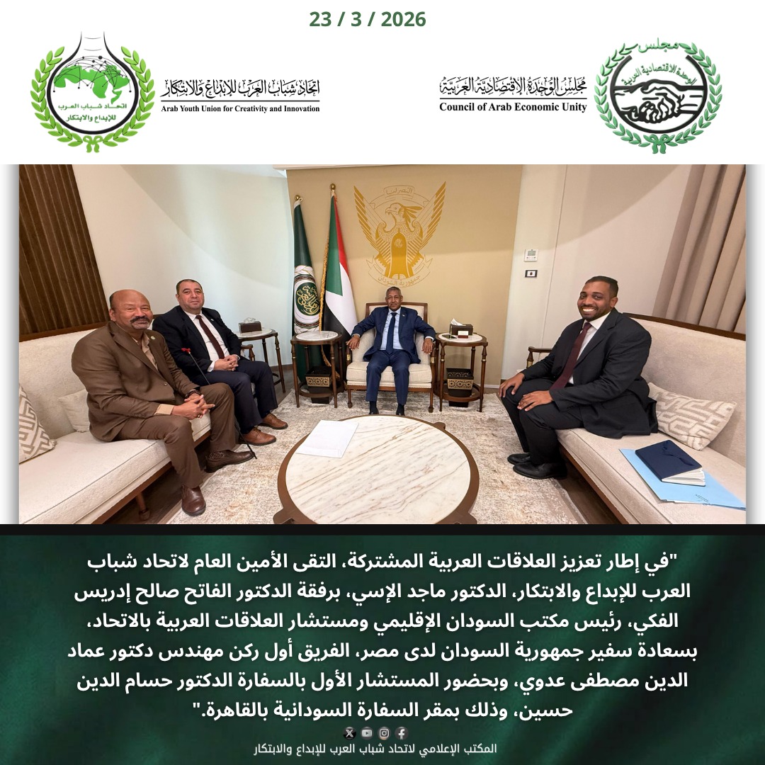 الرئيسية ⁄ شراكة واعدة لتعزيز الإبداع العربي.. اتحاد شباب العرب في ضيافة السفير السوداني بالقاهرة
